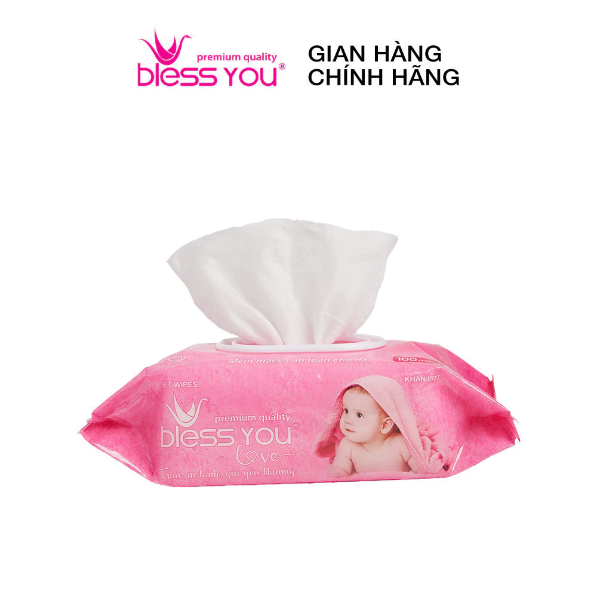 Khăn ướt không mùi Bless You Love - 100 tờ (Lốc 3 gói) Khăn ướt Bless You nổi bật với chất liệu mềm mại mang lại cảm giác thoải mái khi sử dụng. Sản