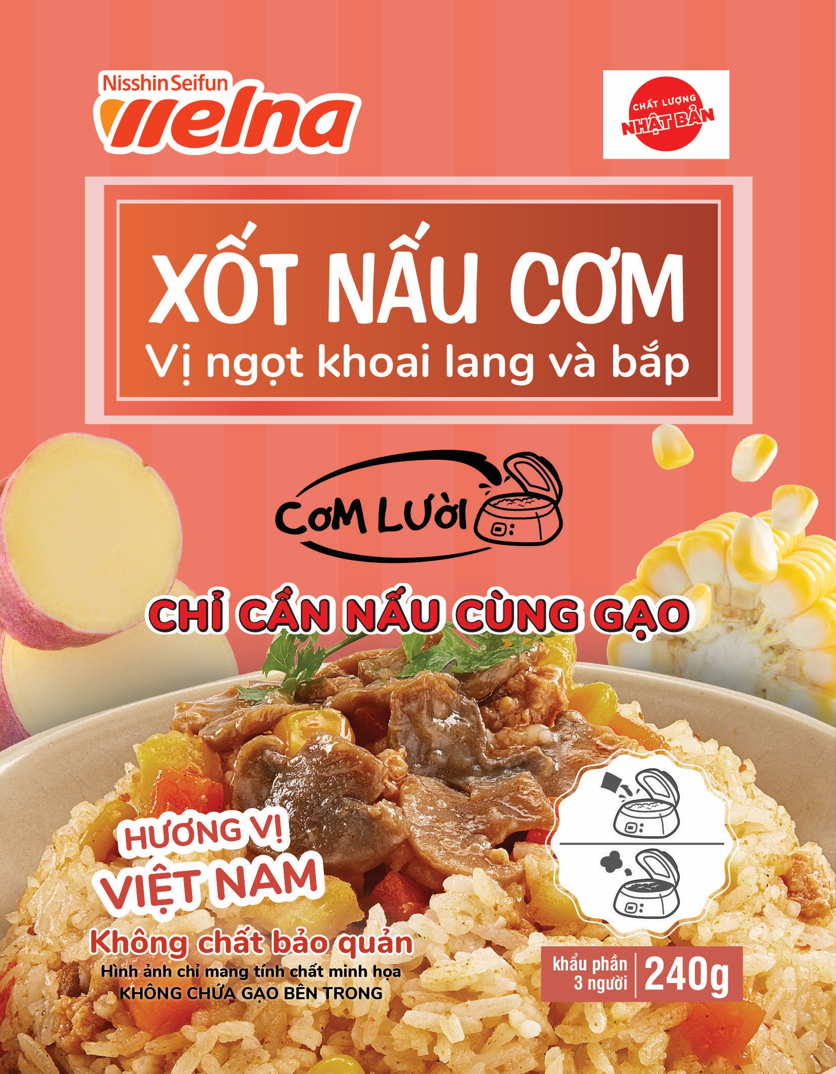 Xốt nấu cơm Nisshin là một sản phẩm tiện lợi cho bữa ăn của bạn và gia đình. Chỉ cần nấu chung với gạo, bạn sẽ có món cơm trộn thơm ngon.