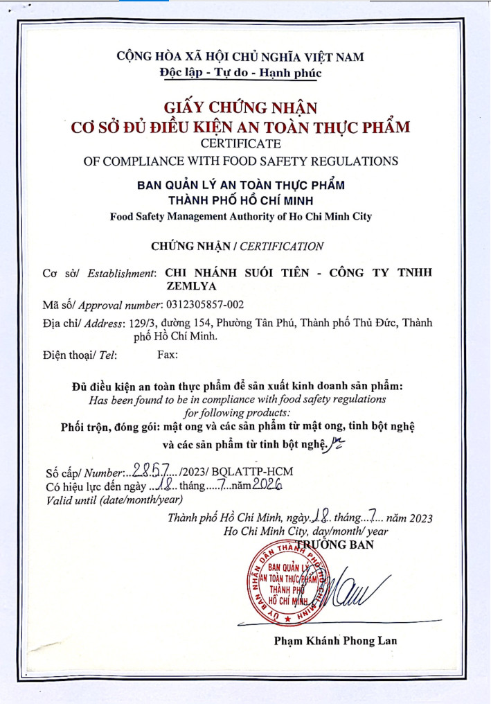 Mật Ong Chín Honimore là thương hiệu thuộc sở hữu của Công ty TNHH Zemlya, với hơn 40 năm kinh nghiệm trong sản xuất mật ong. Các sản phẩm mật ong Honimore đã có mặt ở tất cả các hệ thống siêu thị lớn của Việt Nam và nước ngoài.