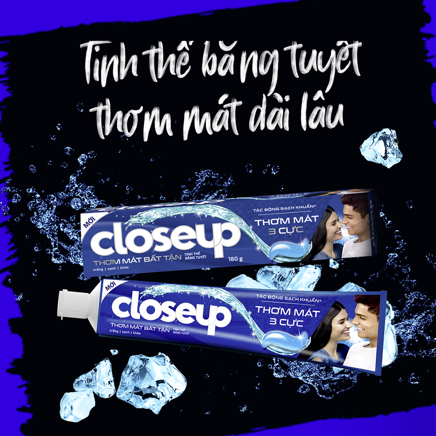 - Kem đánh răng dạng gel giúp sạch khuẩn Closeup Thơm Mát Bất Tận Tinh Thể Băng Tuyết với công thức Thơm Mát 3 Cực hoàn toàn mới