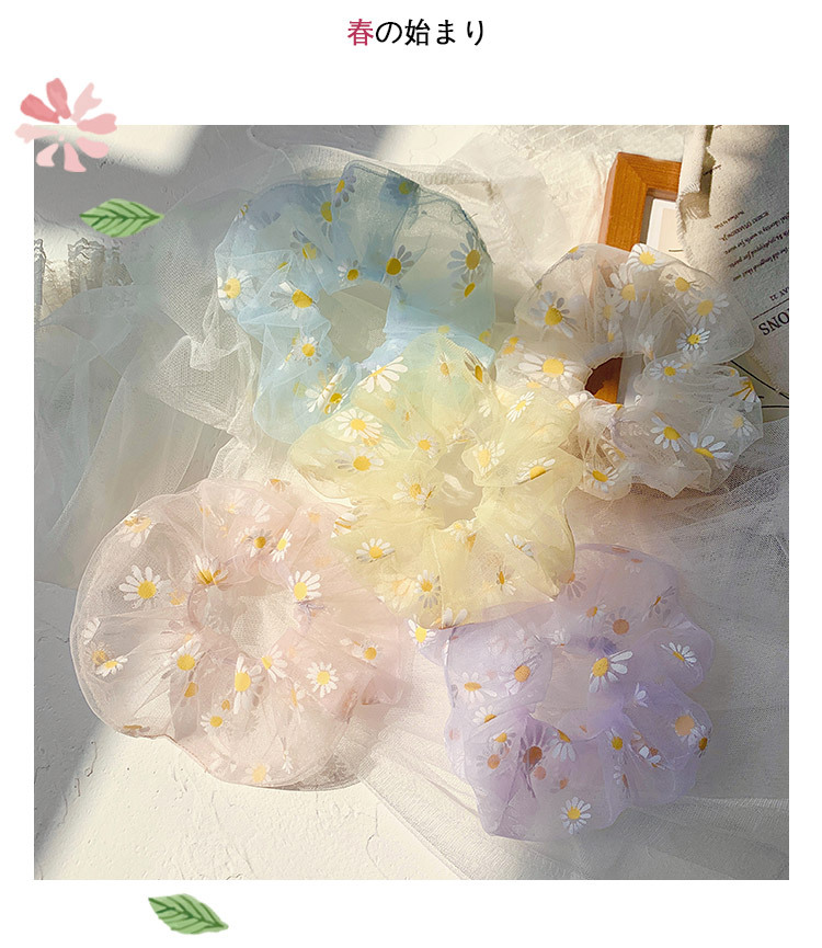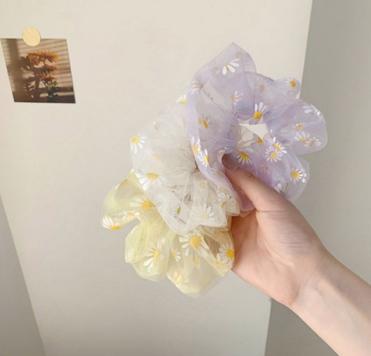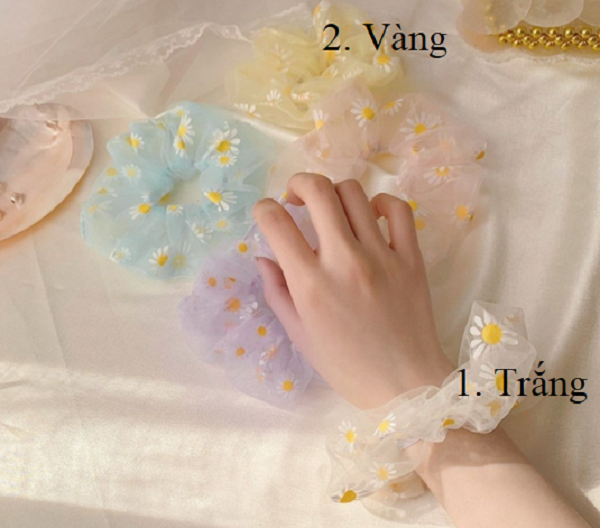 Hàng về mỗi ngày Shop sẽ cập Nhật kho liên tục nhé. Không lo hết hàng nhé Tên, mã: cột tóc vải Scrunchies voan lưới hoa cúc Số lượng: 1 cột Màu sắc: nhiều màu.