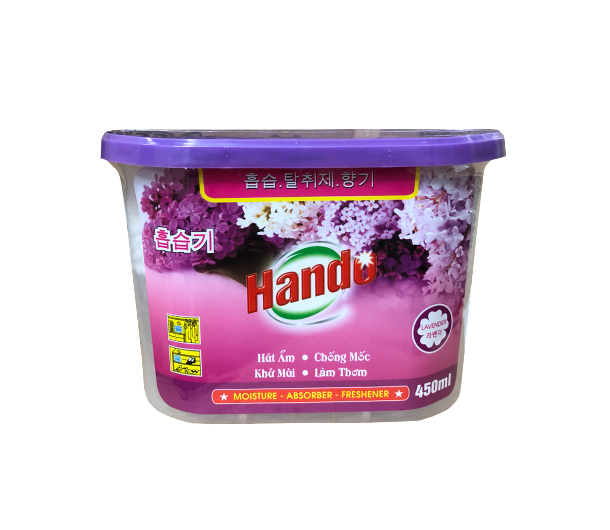 Công thức hút ẩm, chống ẩm mốc tiên tiến Hương thơm nhẹ, khử mùi hiệu quả Cần thiết cho mọi gia đình Thông số sản phẩm Tên sản phẩm : Bình hút ẩm Hando 450ml