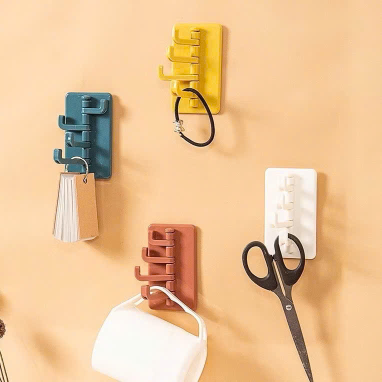 Combo 4 Móc Treo Dán Tường 4 Nhánh Chất Liệu Nhựa ABS Tải 5kg Thân Trục Xoay Thay Đổi Vị Trí