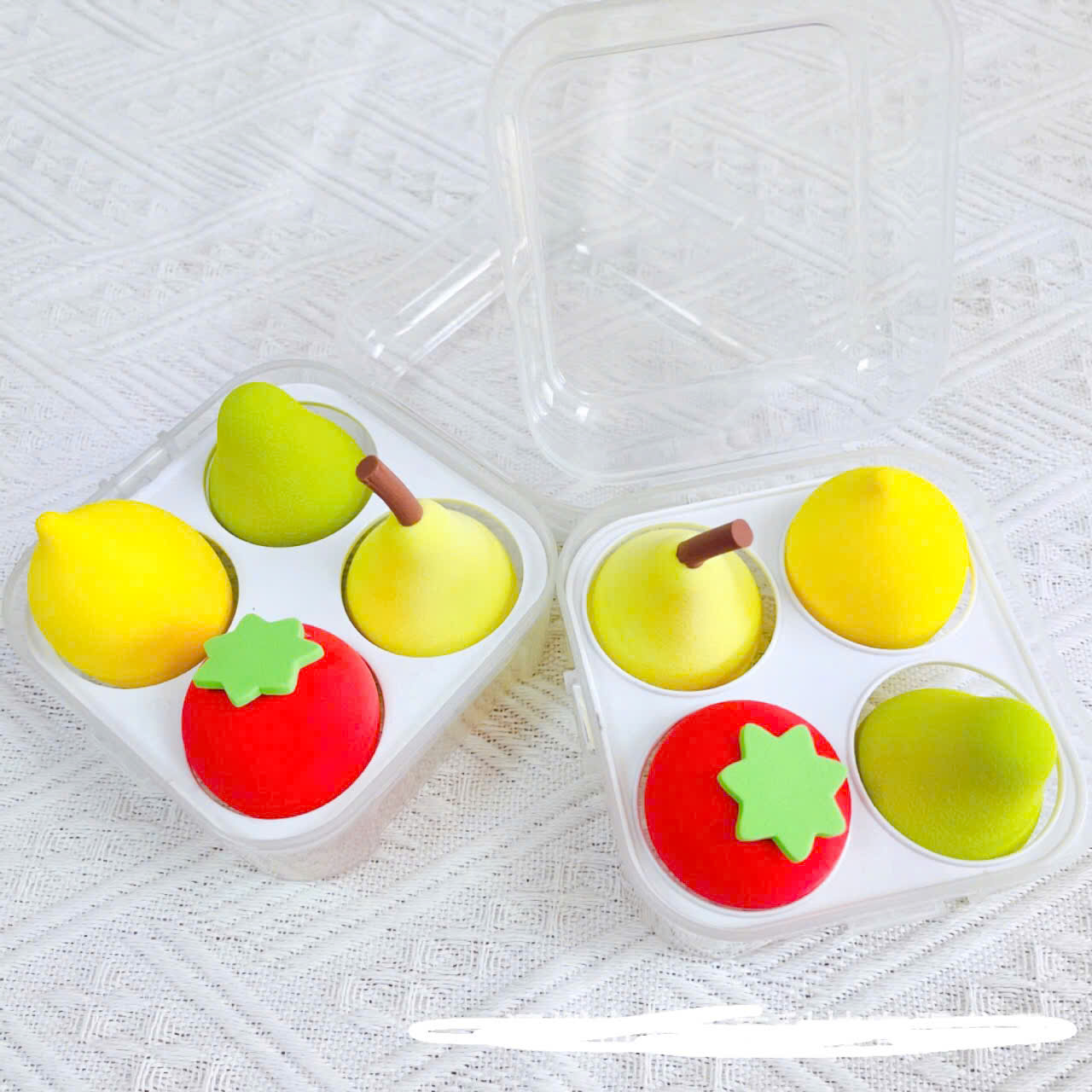 Mua tại Tiktok- Combo 4 món mút tán phấn cao cấp hình trái cây giọt nước, có độ đàn hồi cao , dẻo ,không bị biến dạng ,nhiều màu sắc cute xinh xắn đáng yêu