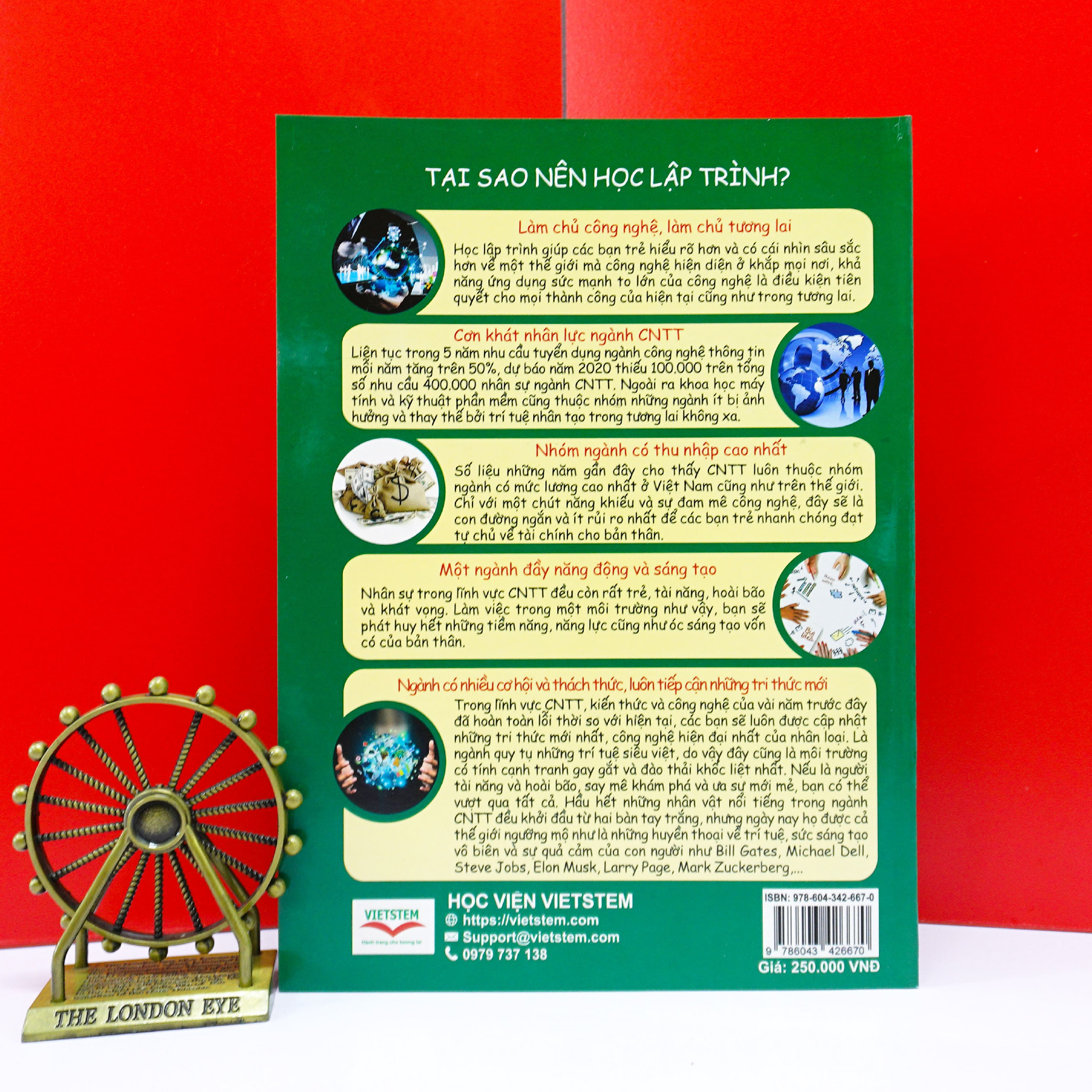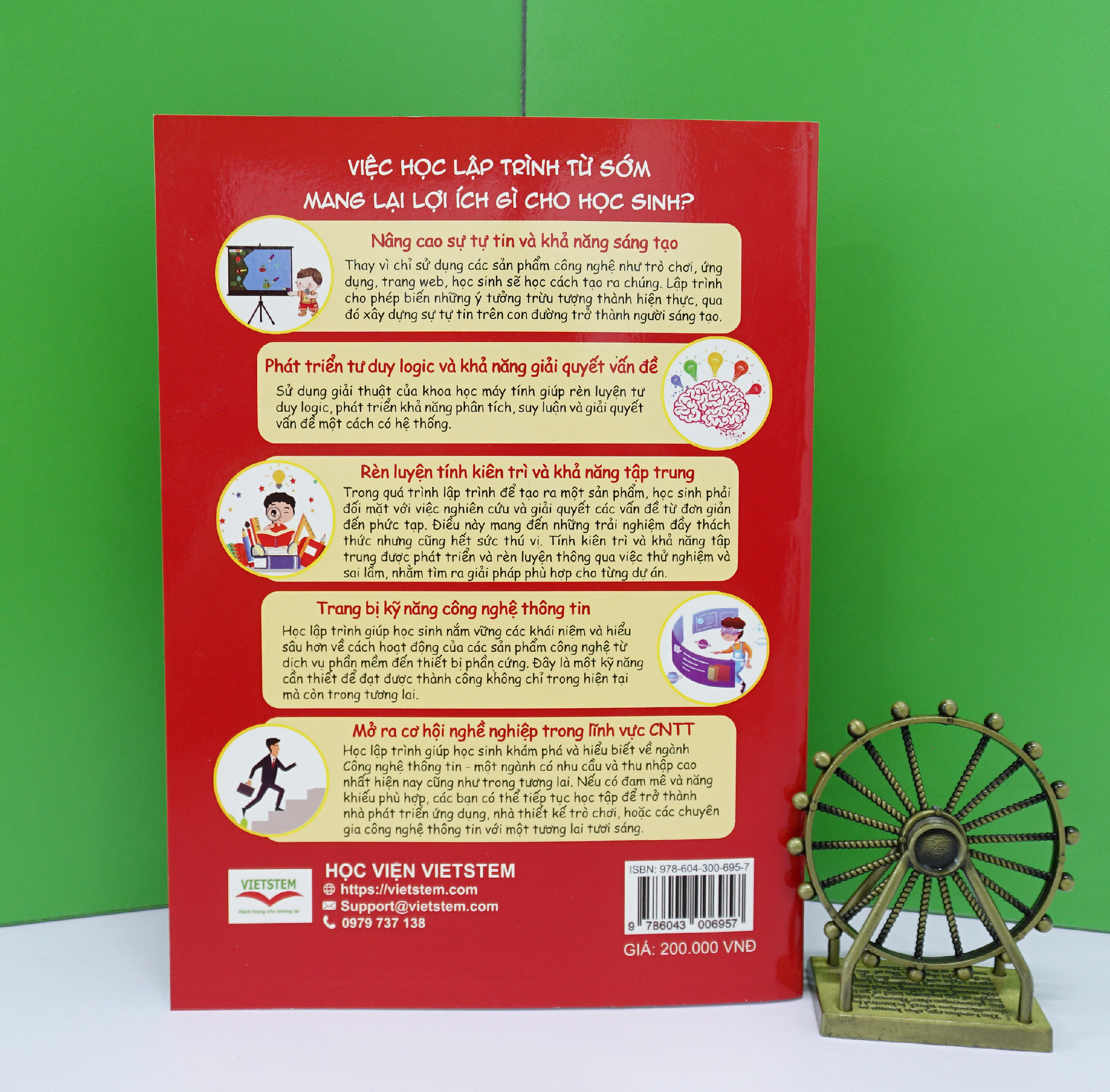 • Sách liên tục cập nhật theo phiên bản Scratch mới nhất vì vậy có thể thay đổi một phần tên sách theo phiên bản cập nhật, phần nội dung kiến thức không thay đổi. Mọi thắc mắc về các sản phẩm của VIETSTEM liên hệ qua Chat để được hỗ trợ và giải đáp.