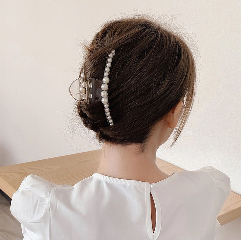 Kẹp càng cua, dây buộc tóc đính ngọc trai là món phụ kiện tóc rất được yêu thích trong một năm đầy biến động vừa qua. Khi học tập và làm việc đều thông qua những cuộc gọi trực tuyến, các cô gái có thói quen sử dụng kẹp càng cua, dây buộc tóc tiện lợi để giữ cho mái tóc luôn gọn gàng, thoải mái.