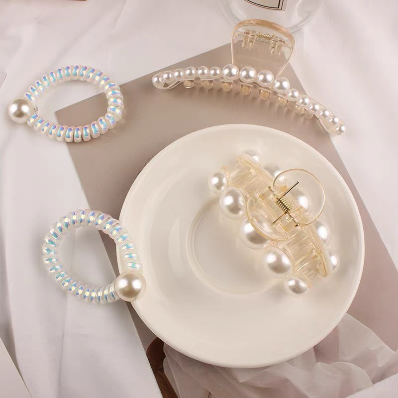 Các nàng hãy thêm ngay set 5 món kẹp tóc và dây buộc đính ngọc trai này vào bộ saưu tập phụ kiện tóc trending ngay nhé