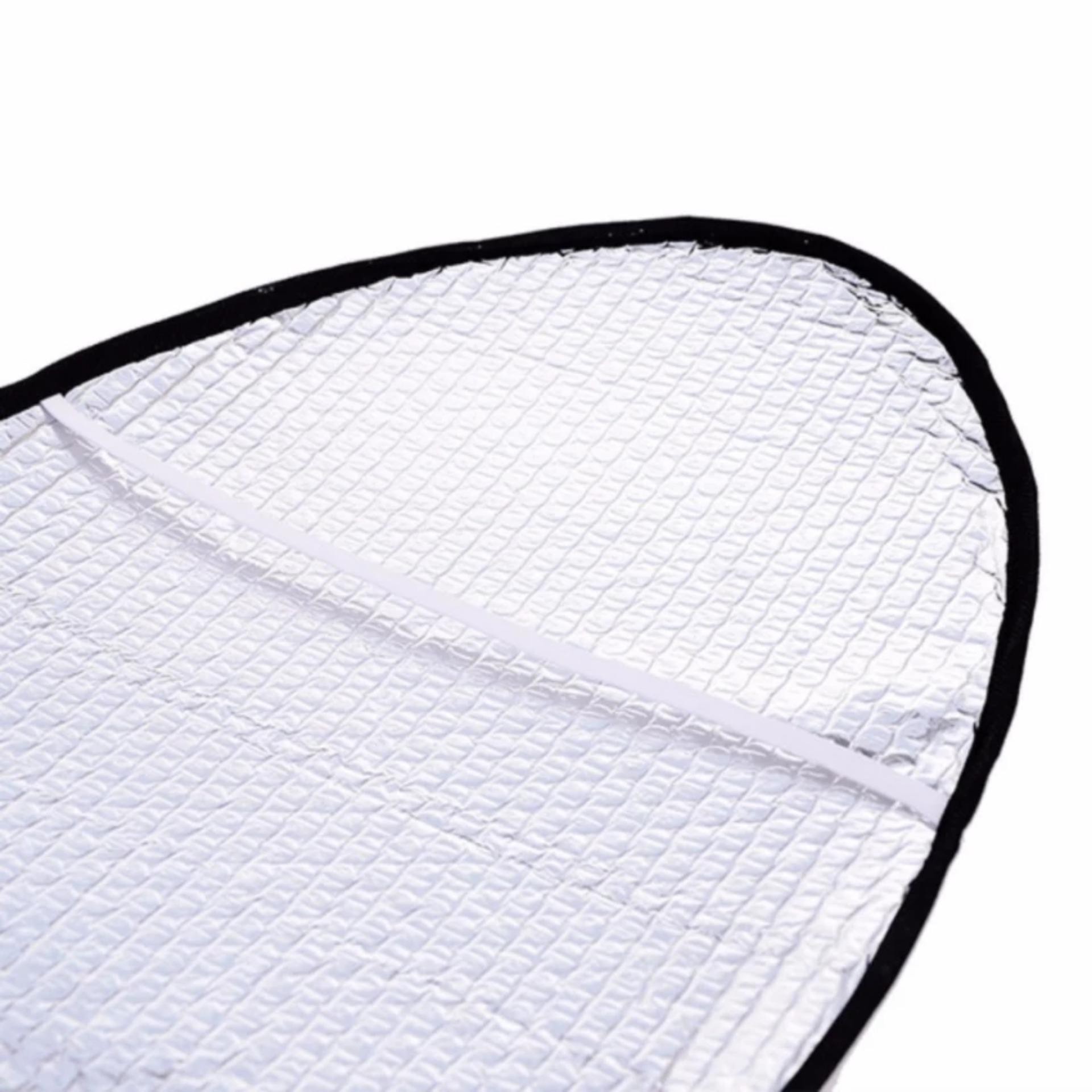 THÔNG TIN SẢN PHẨM - Kích thước:Dài 80cm, phần rộng nhất 36cm - Số lượng: 5 Miếng - Chất liệu: Nilon phủ lớp tráng bạc Tấm lót chống nắng yên xe máy được làm bằng