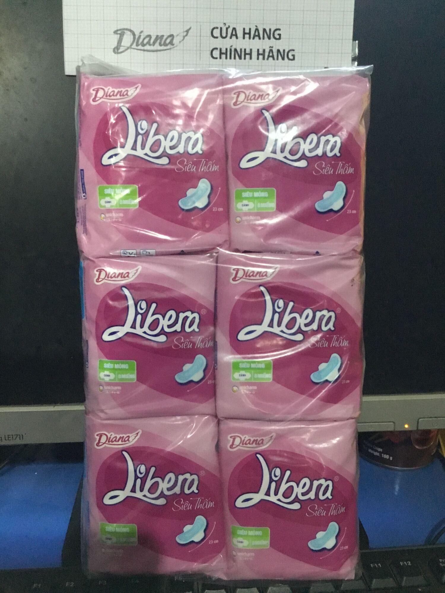 Mua tại TiktokCombo 6 Gói Băng Vệ Sinh Diana Libera Siêu Mỏng Cánh Siêu Thấm 23cm -8 Miếng/Gói -Date luôn mới