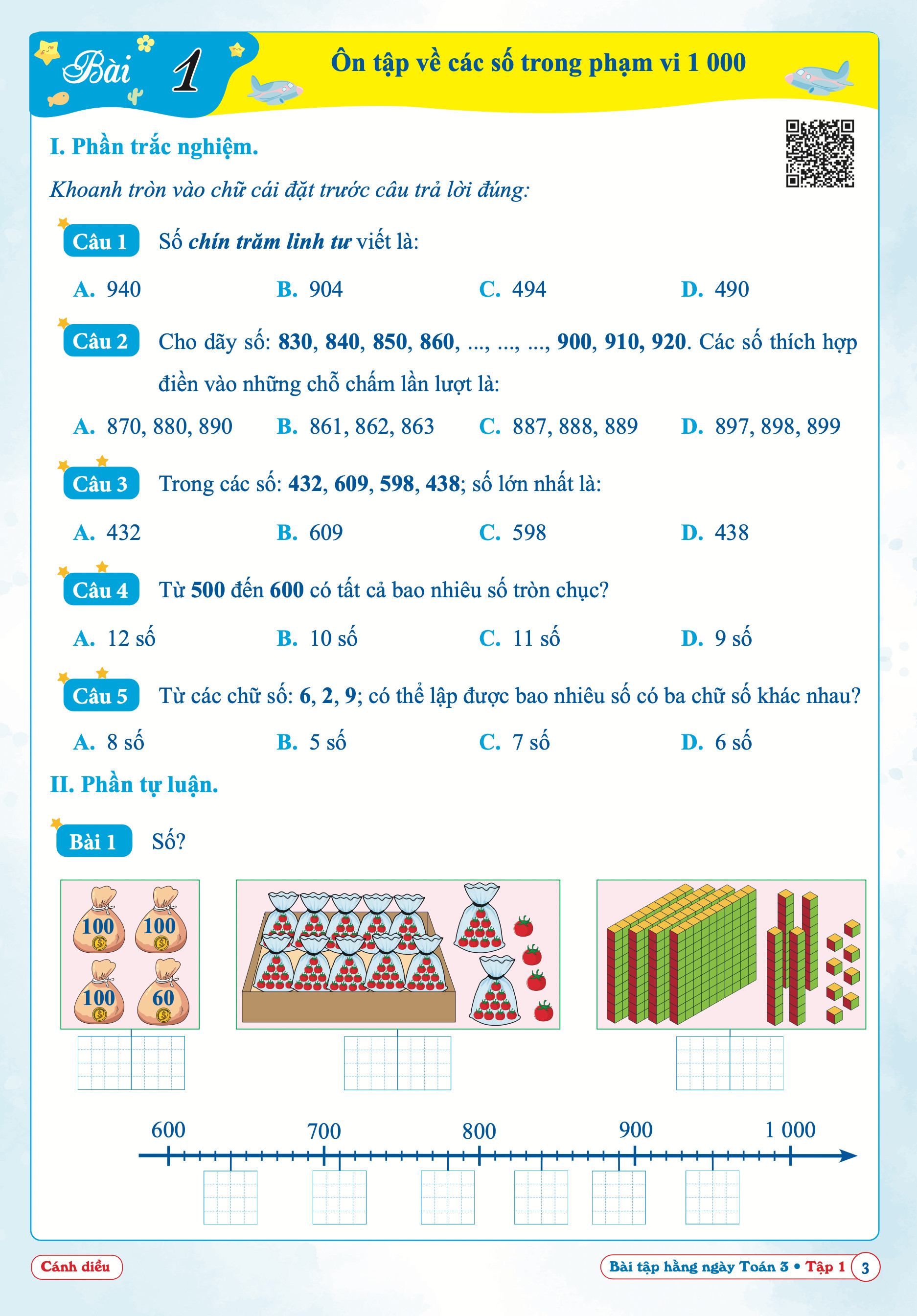Bài 1 - Ôn tập các số trong phạm vi 1 000 | Bài tập hằng ngày | Toán lớp 3 | Cánh Diều
