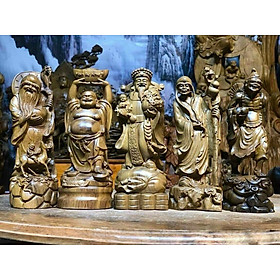 ✨Combo Bộ tượng ngũ vị thần tài bằng gỗ bách xanh thơm phức kt cao 20×8×6cm