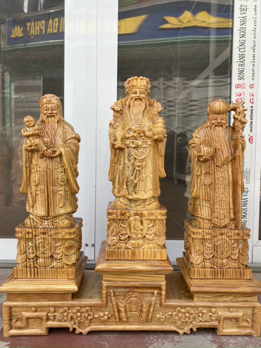 Báo giá cả lô tượng Tam Đa Phúc Lộc Thọ từ gỗ bách xanh, ngọc am, hương, trắc dây, huyết long …