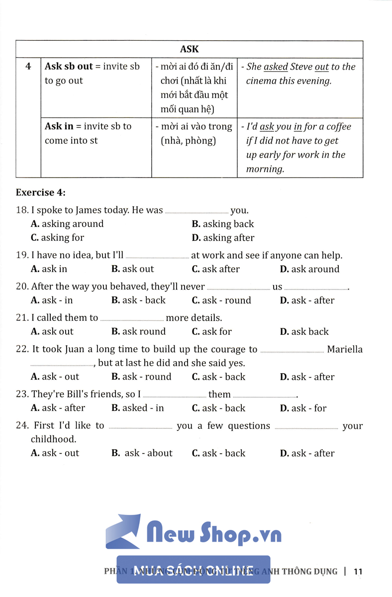 3000 ngữ động từ tiếng Anh và cách dùng Ngữ động từ là sự kết hợp của các động từ thường như put, take, come và go với các tiểu từ như in, out, on