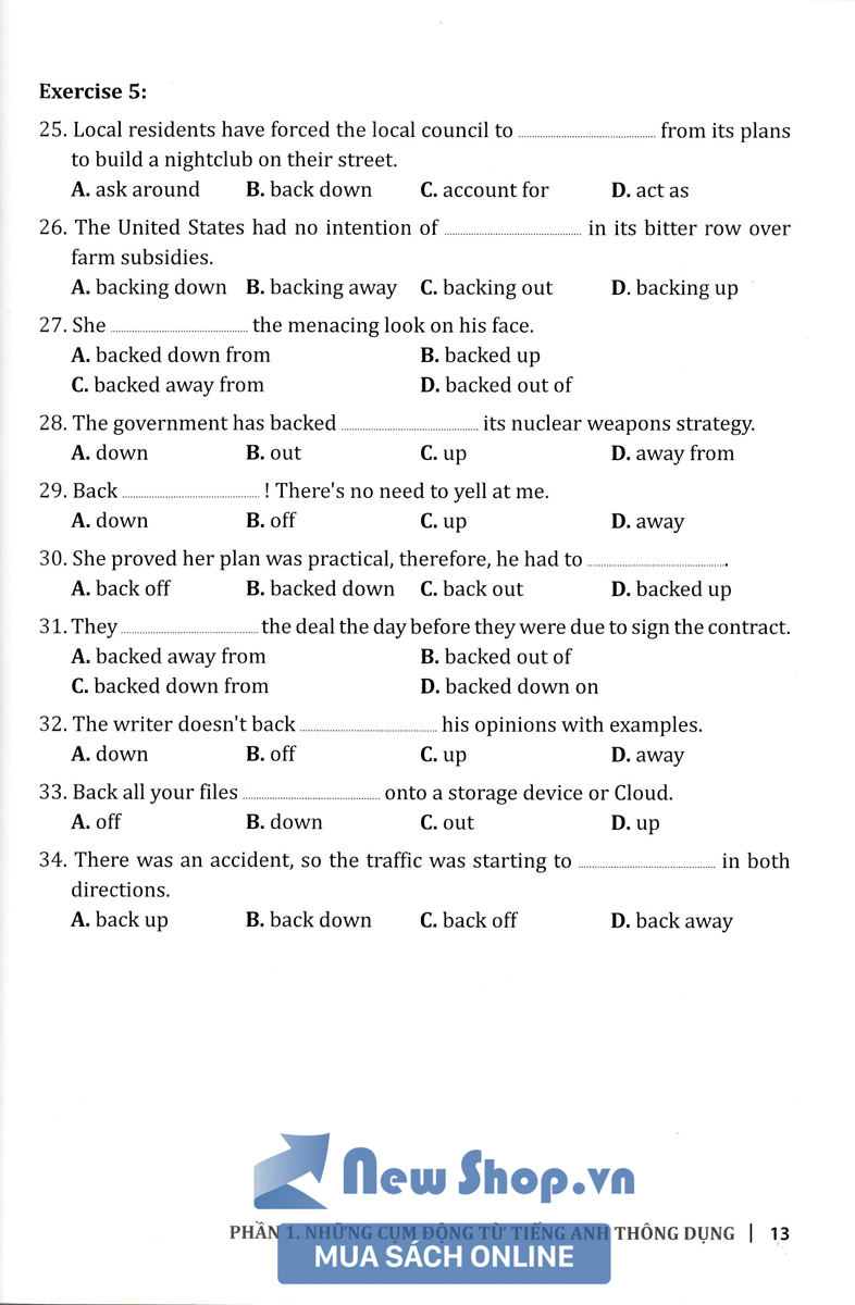 CHINH PHỤC CÂU HỎI CỤM ĐỘNG TỪ DỄ XUẤT HIỆN TRONG ĐỀ THI (BUỔI 1)