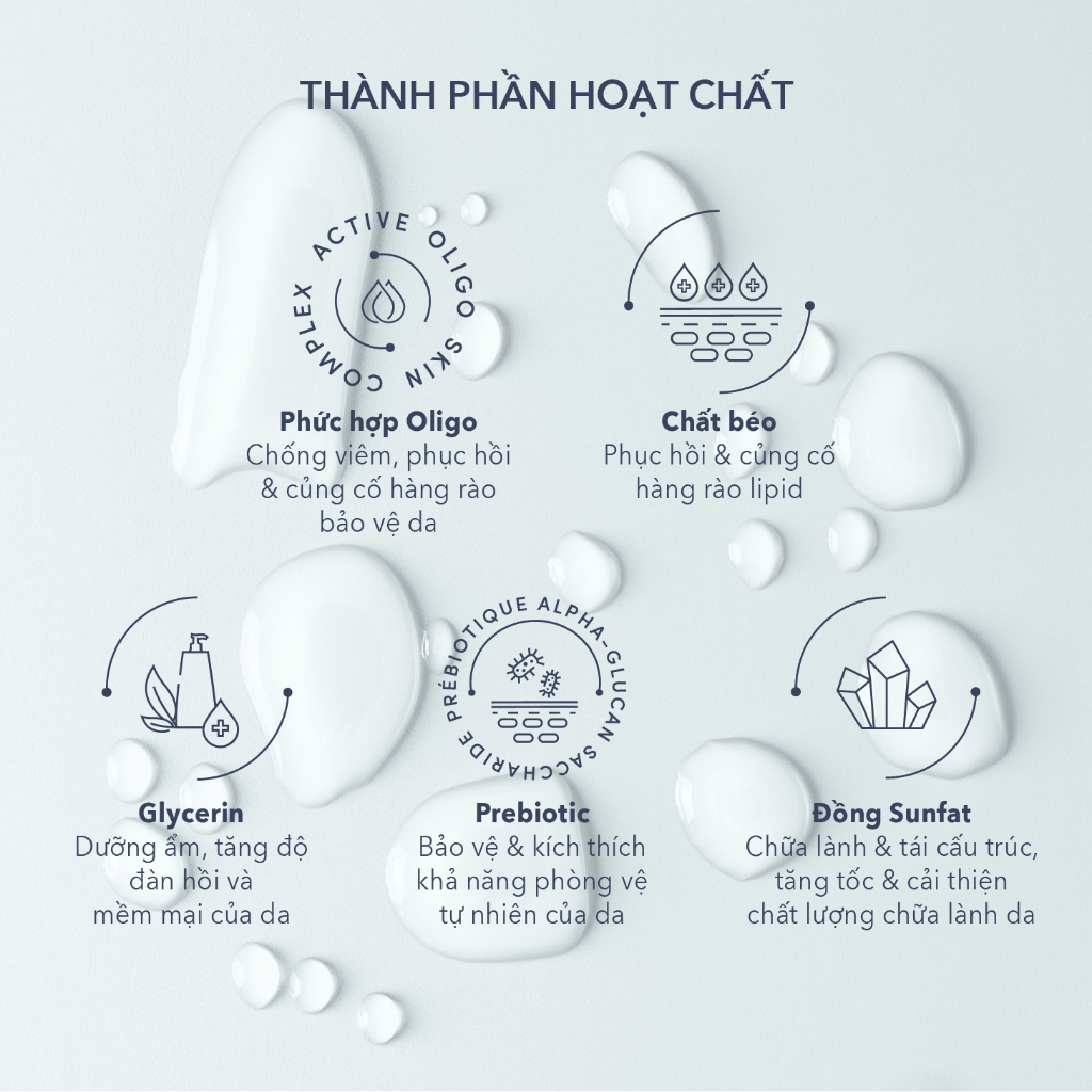 Chỉ định: Da chàm, viêm da cơ địa, dị ứng, ngứa, mẩn đỏ Cách dùng: Đỗ vài giọt vào tay và tạo bọt, nhẹ nhàng rửa sạch da mặt, da cơ thể và mái tóc. Rửa sạch