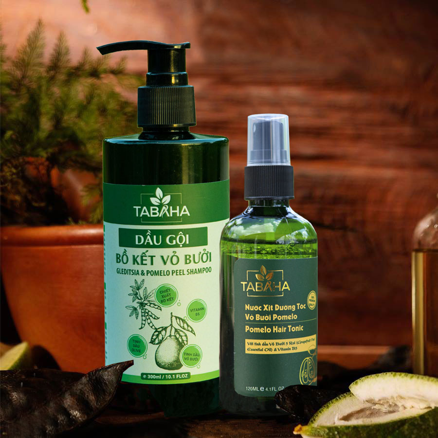 ✨Combo Dầu Gội Bồ Kết Vỏ Bưởi 300ml Và Xịt Dưỡng Tóc Tinh Dầu Bưởi Tabaha 120ml Giảm Rụng, Mọc Tóc Nhanh