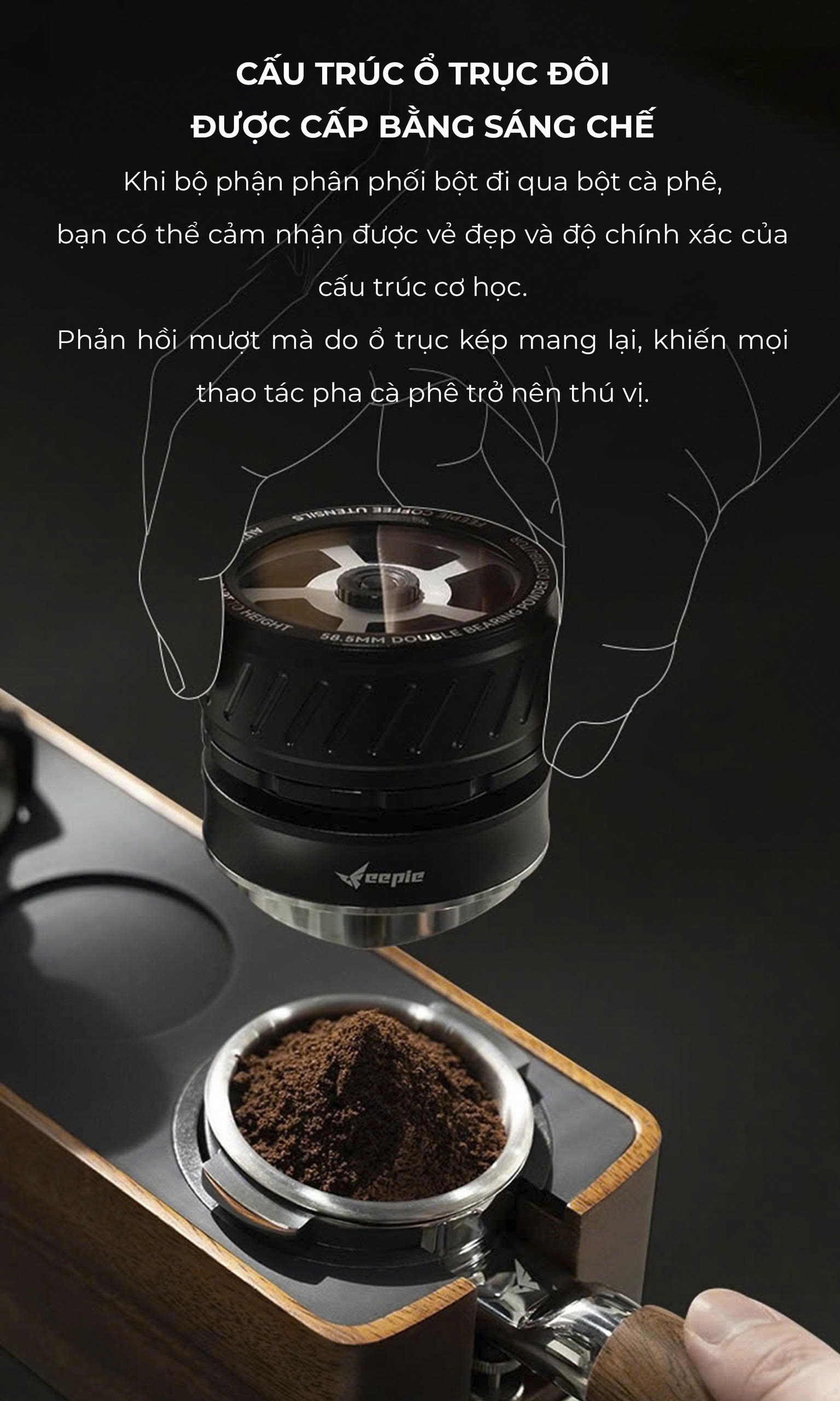 FEEPIE KIM XOAY TÁN BỘT CÓ VÒNG ĐỆM CAO SU – TỐI ƯU CHIẾT XUẤT, CẢI THIỆN CREMA! Bạn muốn phân bố bột cà phê đều hơn, hạn chế kênh rãnh để có chiết xuất