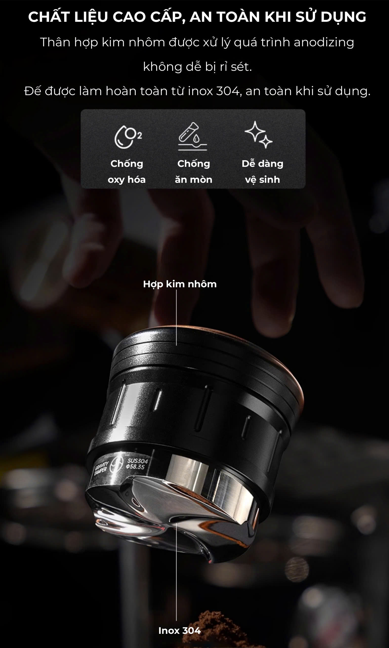 KIM TÁN ĐỀU BỘT CÀ PHÊ ESPRESSO ️Tránh tình trạng vón cục cà phê bên trong basket. ️Chất liệu: Inox 304. Bên cạnh tầm quan trọng không thể thiếu của Tamper và Tamper OCD trong