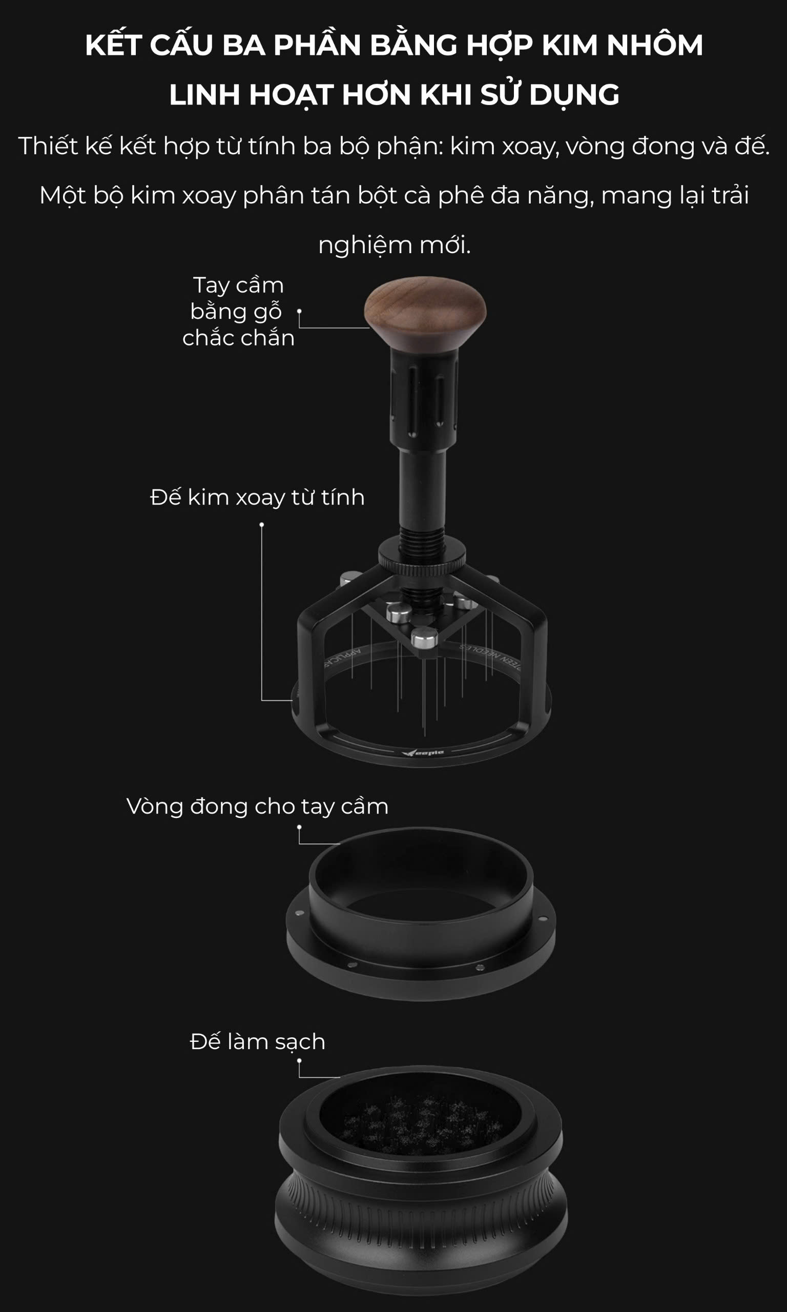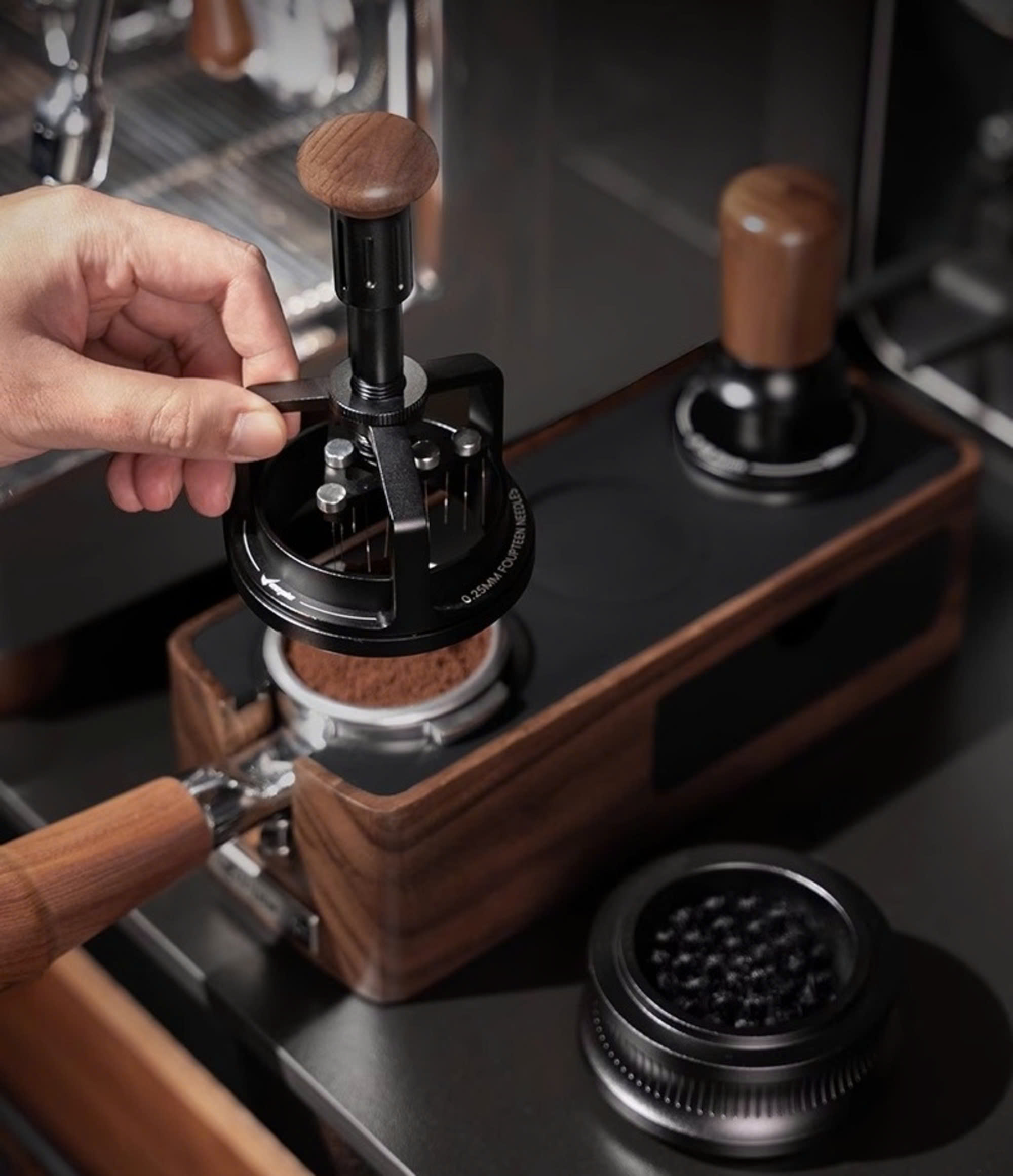 KIM TÁN BỘT CÀ PHÊ WOOD CHARM – CÔNG CỤ HỖ TRỢ CHIẾT XUẤT HOÀN HẢO Kim tán bột cà phê Wood Charm là công cụ không thể thiếu cho những người yêu thích cà