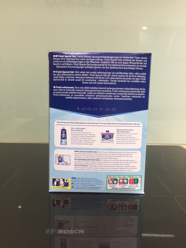• Viên rửa bát đĩa Finish chứa các thành phần thay thế đặc biệt để thay thế muối và ngăn chặn limescacle (nếu nguồn nước sử dụng máy rửa bát đĩa có độ cứng cao nên dùng thêm muối rửa bát đĩa bổ sung)
