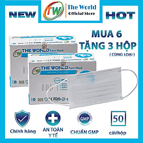 [ Combo mua 6 hộp tặng 3 hộp] [HỘP-50 CÁI] Khẩu trang y tế 3 lớp The World kháng khuẩn, bụi mịn chất lượng - Hàng Chính Hãng The World THÔNG TIN SẢN PHẨM KHẨU