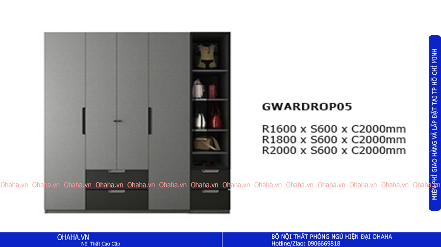 - 01 tủ quần áo có kích thước D180 x R60 x C200cm;