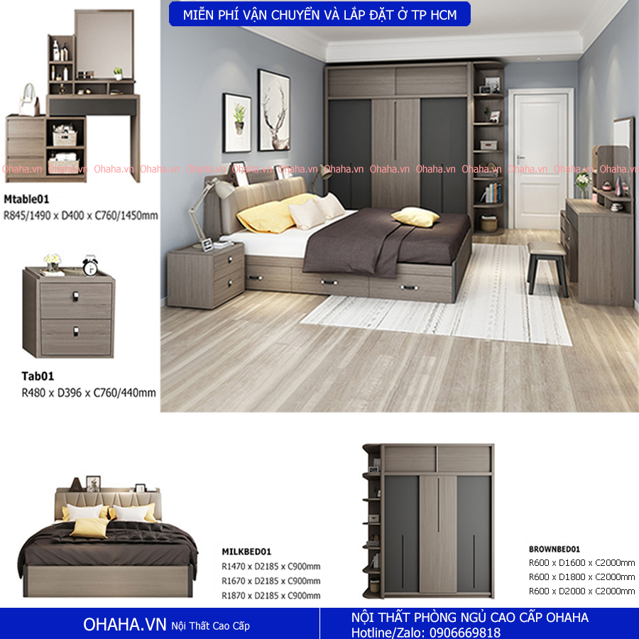 Combo Phòng Ngủ Cao Cấp Xám Khói Ohaha (R140) bao gồm: