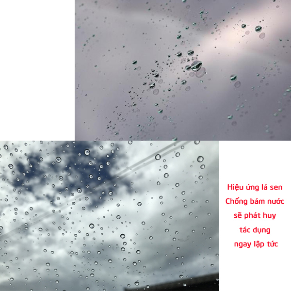 - Chống bám nước kính ô tô, kính chắn gió, cửa sổ, gương ô tô. Nước trên kính chắn gió sẽ trôi hết khi xe đạt tốc độ >38Km/h