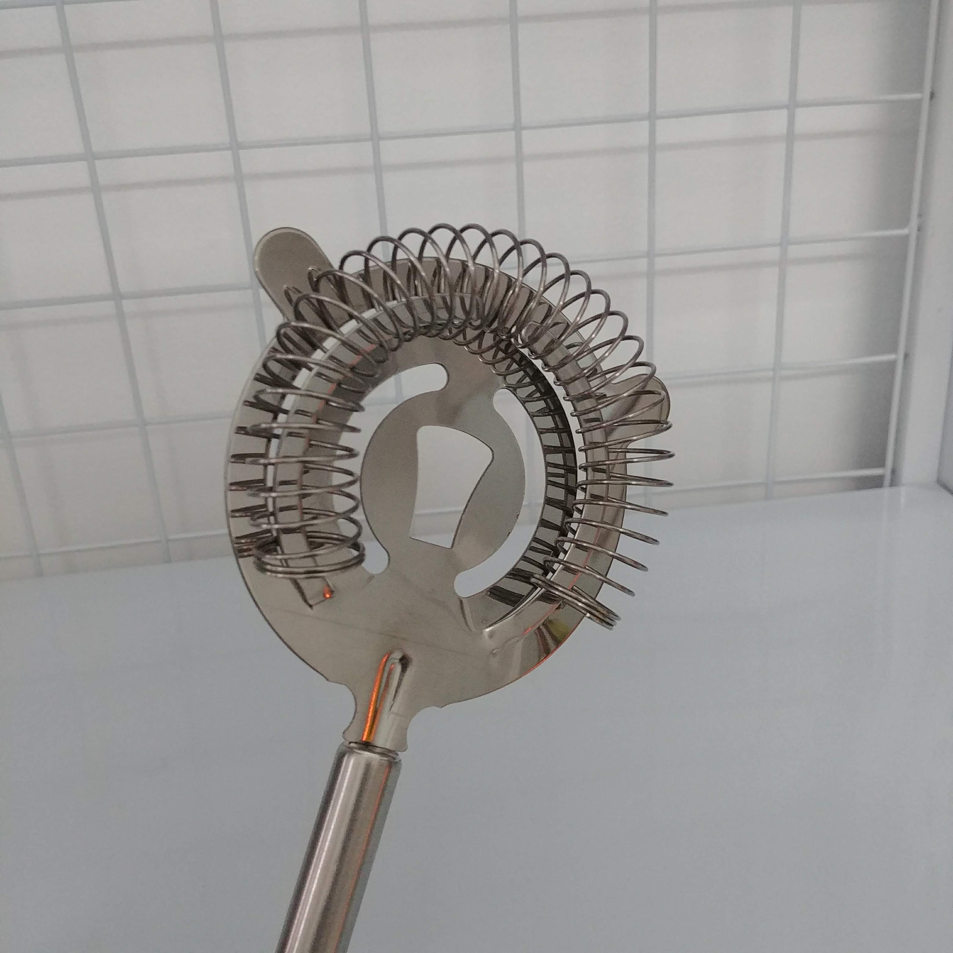 - Strainer – Dụng Cụ Lọc Đá loại tay cầm dài được thiết kế bằng một thanh kim loại inox có hình đĩa với nhiều ống xoắn lò xo được gắn liền ở bên dưới và phần còn lại được gắn với một tay cầm .
