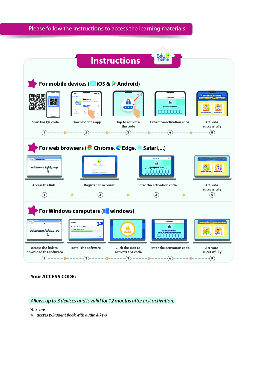 Bản in: Sách truyện có các câu hỏi trước, trong khi và sau khi đọc, thuật ngữ, bài tập từ vựng ôn tập và kịch bản Theatre Time