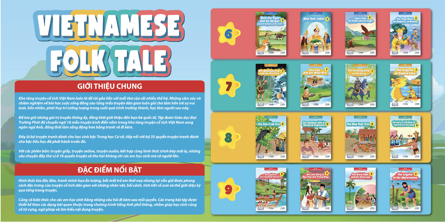 Vietnamese Folk Tale là bộ truyện tranh dành cho học sinh bậc Trung học Cơ sở, tiếp nối với bộ 35 quyển truyện tranh dành cho bậc tiểu học đã phát hành trước đó. Hình thức bìa độc đáo, tranh minh họa ấn tượng, bắt mắt trẻ em thời nay nhưng lại vẫn giữ được phong cách đặc trưng của truyện cổ tích dân gian với những nhân vật, bối cảnh, tình tiết cổ xưa và thế giới diệu kỳ qua trưng trang truyện.