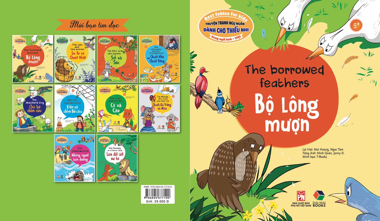 Combo Truyện tranh ngụ ngôn dành cho thiếu nhi song ngữ Anh - Việt ( Bộ 4 cuốn bộ lông mượn + sư tử và chuột nhắt+ cò và cáo + chuột , gà trống và mèo