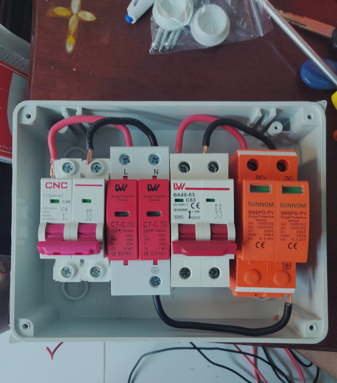 Ráp tủ điện hòa lưới 1 pha 8kw 3 string full thiết bị của Etek