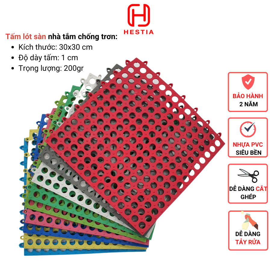 Thảm chống trơn trượt nhà tắm size 30x30cm tiện dụng, Tấm thảm nhựa lót sàn nhà tắm kháng khuẩn chống trượt Thảm nhựa ghép chống trơn thích hợp trải chống trơn nhiều vị trí 1,