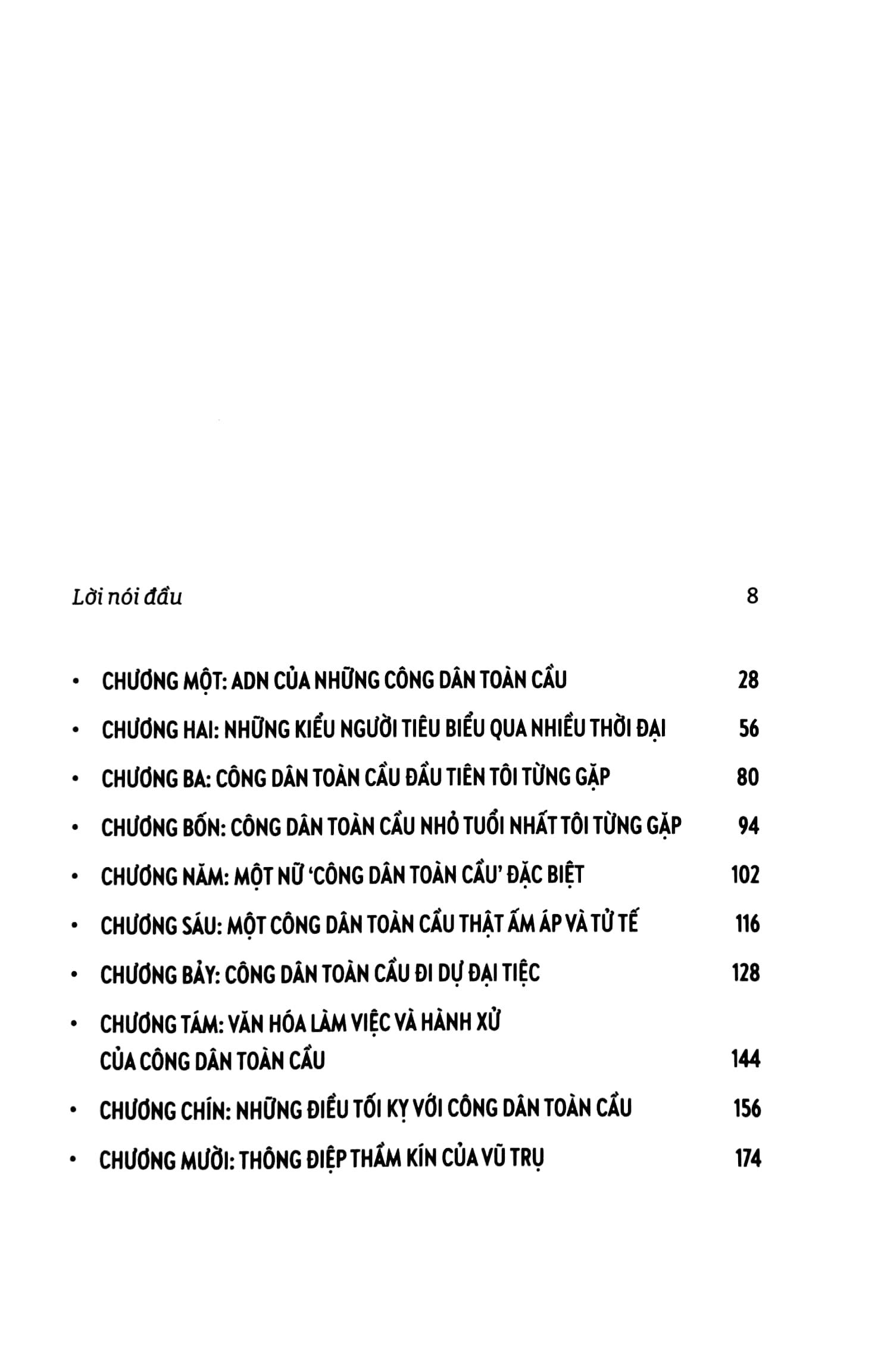Mua tại TiktokNhững "công dân toàn cầu" mang những nét đặc trưng nào? Họ có sinh hoạt, làm việc, và hành xử theo các chuẩn mực khác biệt của riêng một cộng đồng mang đẳng cấp cao? Liệu có những hình mẫu nào để chúng ta tham khảo, từ đó tự rèn cho mình phong thái của một "công dân toàn cầu"? Và xa hơn nữa, một công dân của Vũ trụ? Bằng cách mô tả vừa rộng vừa sâu, vừa bao quát nhưng vẫn cung cấp nhiều ví dụ cụ thể, tác giả Phan Văn Trường mang đến một cách nhìn mới mẻ và sâu sắc về hình ảnh của những con người yêu thương đồng loại, trách nhiệm với địa cầu, và trân quý Vũ trụ mà chúng ta đang sống.