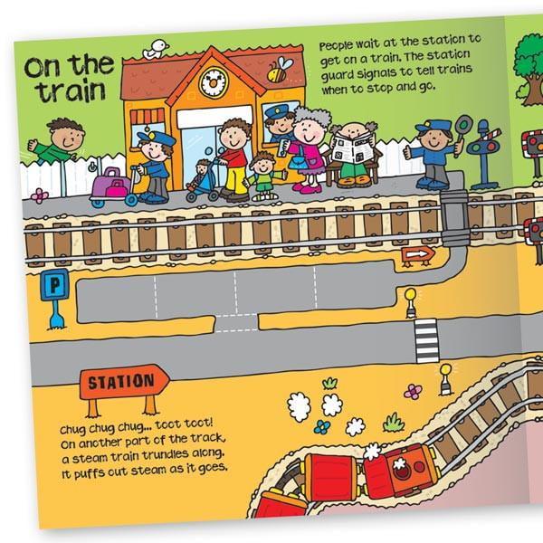 This versatile convertible book engages preschool kids with its entertaining story and striking illustrations. Read the short story with your child about a busy train on an important journey to deliver some coal. The illustrated play mat, designed as a train track, allows your child to follow and interact with the story using their own toys. Finally, the sit-in train will provide hours of fun and imaginative play.