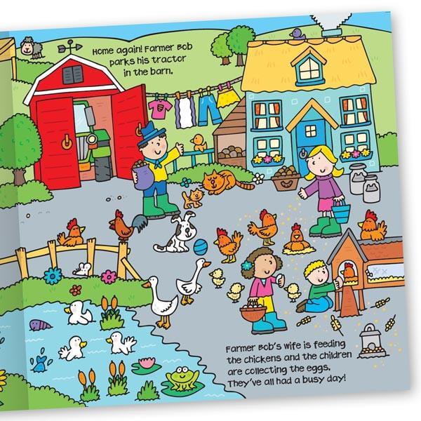 This 3-in-1 convertible book engages toddlers with its enjoyable story and brightly coloured illustrations. Read the short story with your child about Farmer Bob on his journey home after a busy day on the farm. Then encourage your child to interact with the story as a play mat. Finally, they can enjoy playtime using the sit-in tractor!