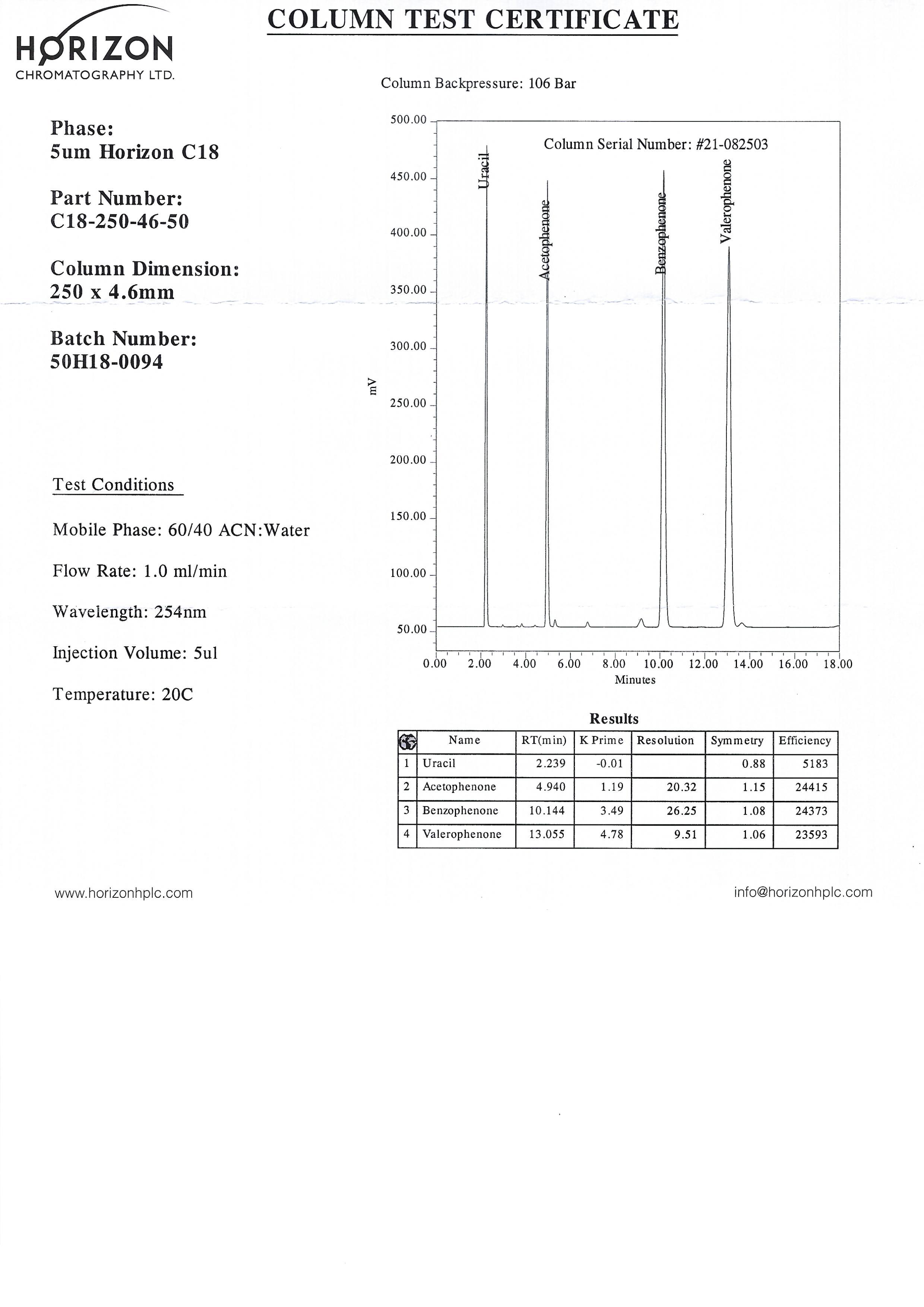- Các cột HPLC Horizon được kiểm tra chất lượng xuất xưởng bằng cách sử dụng thử nghiệm kiểm soát chất lượng nghiêm ngặt nhất trong kỹ thuật sắc ký.