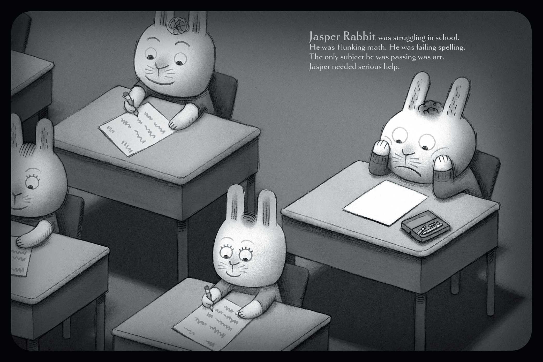 Jasper Rabbit has a problem: he is NOT doing well in school. His spelling tests? Disasters. His math quizzes? Frightening to behold. But one day, he finds a crayon lying in the gutter. Purple. Pointy. Perfect. Somehow…it looked happy to see him. And it wants to help.