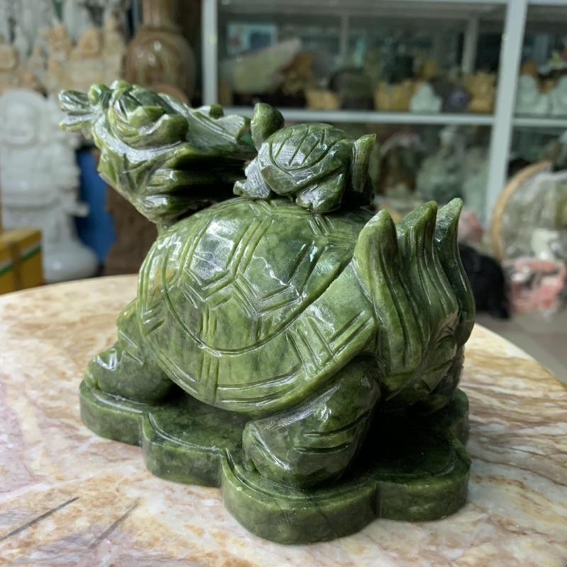 ✨Cụ Long Quy (Rùa Đầu Rồng) Cõng Rùa Con Đá Ngọc Ấn Độ - cao 12cm, ngang 18cm