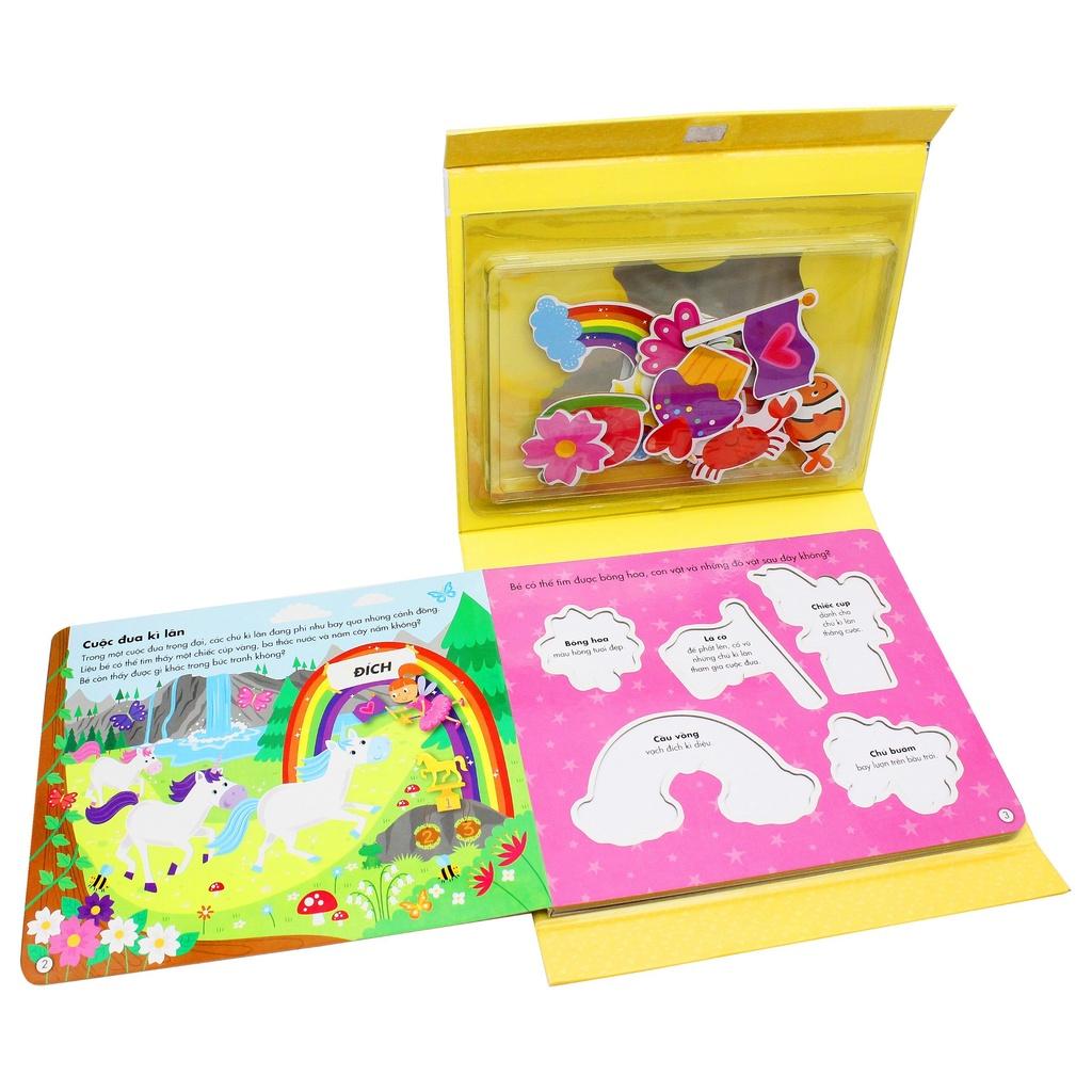 Cùng Nhập Vai - Những Chú Kì Lân Mầu Nhiệm Trẻ nhỏ thường tỏ ra thích thú khi được hóa thân vào các nhân vật và làm nhiều công việc khác nhau. Còn gì thú vị hơn khi với một bộ sách, trẻ được hòa mình nhập vai vào các nhân vật đa dạng? Tiếp nối 2 cuốn Thám Hiểm Thế Giới Khủng Long và Bữa Tiệc Của Công Chúa, Tân Việt Books tiếp tục thực hiện cuốn Những Chú Kì Lân Mầu Nhiệm với diện mạo hộp màu vàng bắt mắt. Cuốn sách sẽ cho các bé cơ hội chứng kiến cuộc đua thể thao kì thú của những chú kì lân, đảm bảo để lại những trải nghiệm ấn tượng và khó quên trong lòng bé. Bé hãy từ từ trải nghiệm nhé! Với những bức tranh sinh động, những đồ vật đáng yêu và 15 mảnh ghép để chơi cùng, cuốn sách Những chú kì lân mầu nhiệm chính là lựa chọn hoàn hảo cho những bạn nhỏ nào muốn khám phá ngôi nhà thân yêu của những chú kì lân mầu nhiệm. Mỗi trò chơi trong bộ sách "Cùng nhập vai" đều