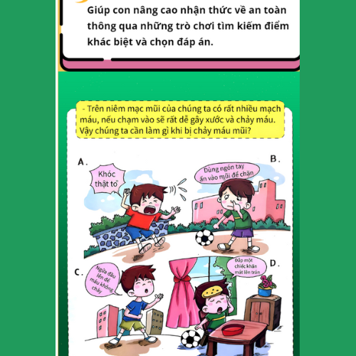 - Giúp con nâng cao nhân thức về an toàn thông qua những trò chơi tìm kiếm điểm khác biệt và chọn đáp án. Quà tặng kèm : Bộ Ebook Cẩm Nang Sinh Hoạt Hàng Ngày Cho Bé + Trọn bộ video hướng dẫn làm đồ thủ công vui nhộn tại nhà.
