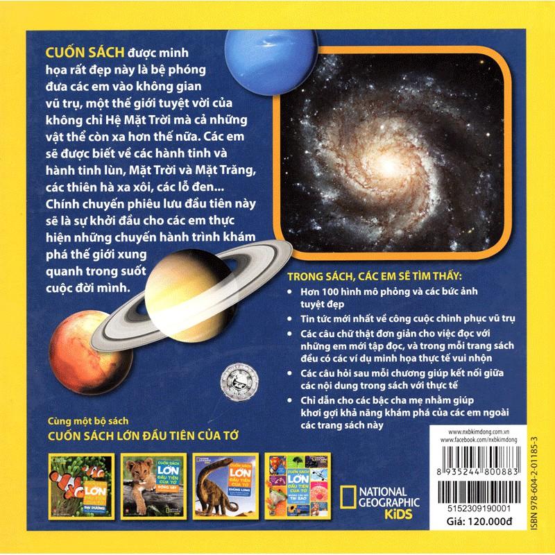 Mua tại TiktokCuốn Sách Lớn Đầu Tiên Của Tớ: Vũ Trụ Thế giới có muôn vàn điều kì thú và bộ sách Cuốn Sách Lớn Đầu Tiên của Tớ sẽ dẫn bé bước vào cuộc hành trình khám phá thế giới diệu kì ấy. Tập sách Vũ Trụ với những minh họa ảnh đẹp và sống động, giúp các bạn nhỏ làm quen với vũ trụ bao la, không chỉ các hành tinh trong hệ mặt trời mà còn cả những nơi xa xôi hơn nữa như: hố đen, các tinh vân… Trong sách các em sẽ tìm thấy: