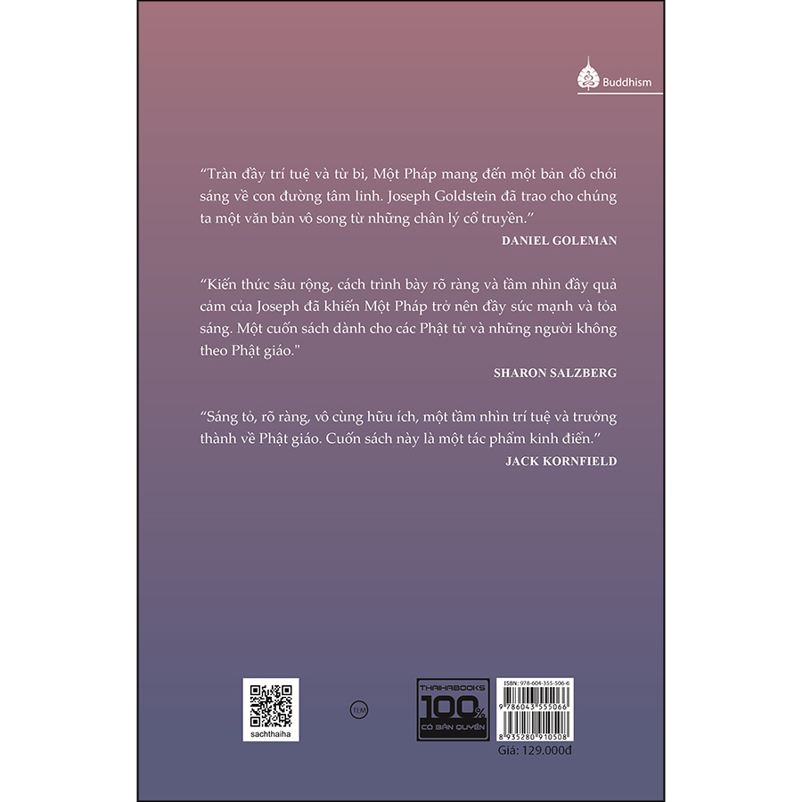 Joseph Goldstein là một Phật tử, giáo thọ trong phần lớn cuộc đời trưởng thành của mình và là một thành viên sáng lập của Hiệp hội Thiền Minh Quán (Insight Meditation Society). Ông là ví dụ cho một kiểu Phật tử mới mà chúng ta thấy ở phương Tây ngày nay. Thay vì bám chặt vào một truyền thống duy nhất, ông đã học với rất nhiều vị thầy, kết nối các phương diện khác nhau của nhiều truyền thống Phật giáo vào sự thực hành của mình. Đã có nhiều tiền lệ trong lịch sử cho cách tiếp cận như vậy. “Chứa đầy trí tuệ và lòng từ bi, Một Pháp cung cấp một bản đồ rực rỡ về con đường tâm linh.” (Daniel Goleman, tác giả của Trí tuệ cảm xúc).