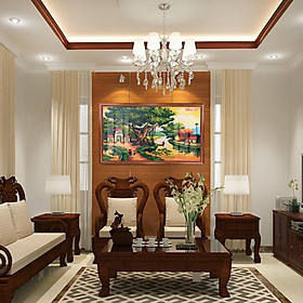 Tranh treo tường làng quê Việt Nam yên bình - Kích thước của tranh : Kích thước : 45x70cm - 50x80cm - 60x100cm - 70x120cm - Chất liệu : Tráng gương - Khách hàng muốn