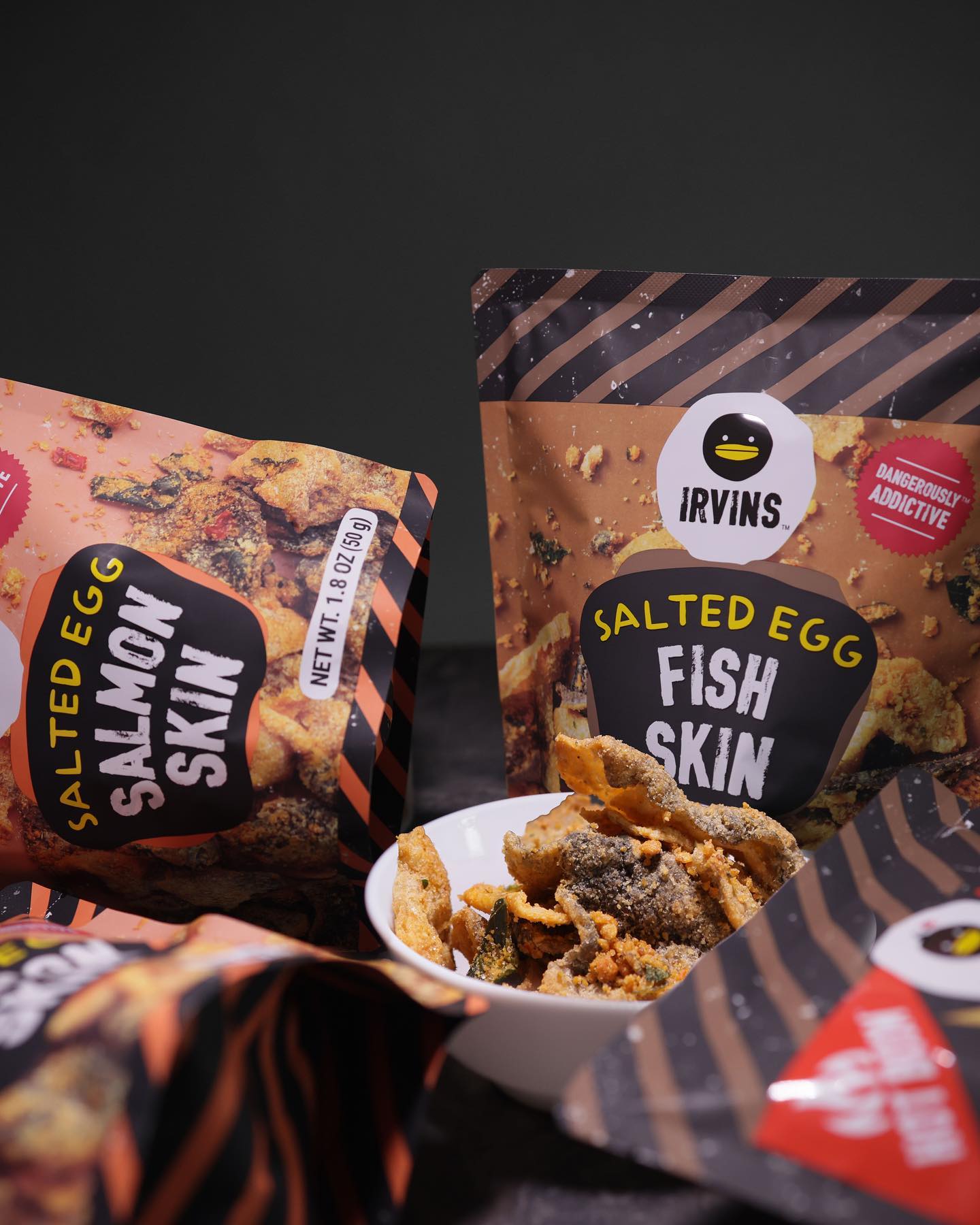 IRvins ra mắt size mới - Da cá trứng muối cay 50g IRVINS Thành phần: Da cá Pangasius, lòng đỏ trứng vịt muối, ớt đỏ Giòn rụm - Thơm lừng - Béo ngậy -