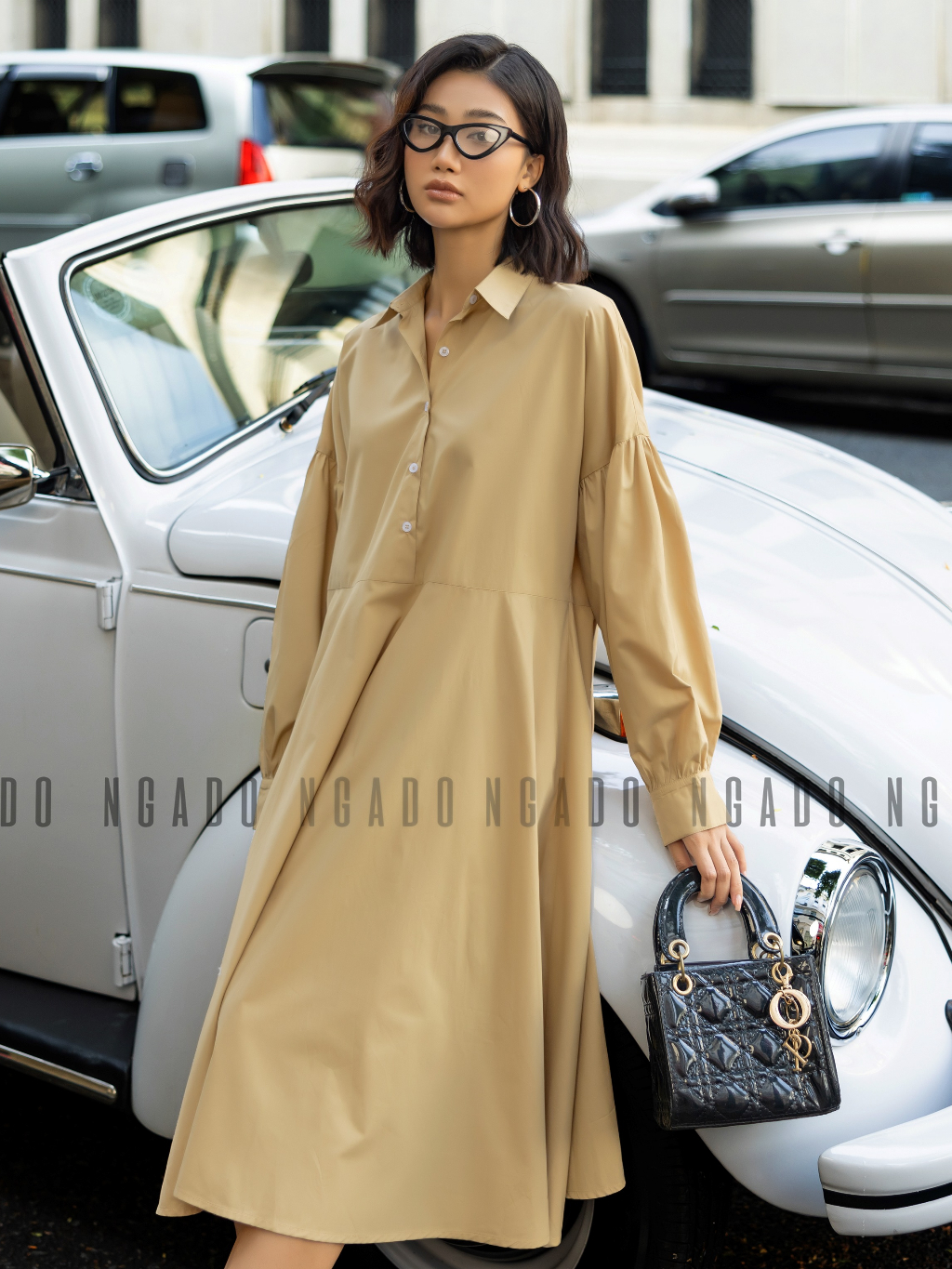 ✨Đầm sơ mi nâu dài tay NGADO , đầm nữ , Đầm suông , Đầm phom rộng nữ thiết kế