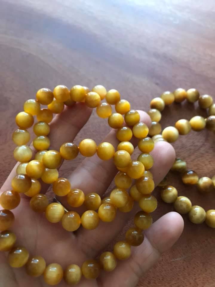 Vòng chuỗi 108 hạt đá mắt hổ vàng tâm - Hợp mệnh kim, mệnh thổ | Ngọc Quý Gemstones |