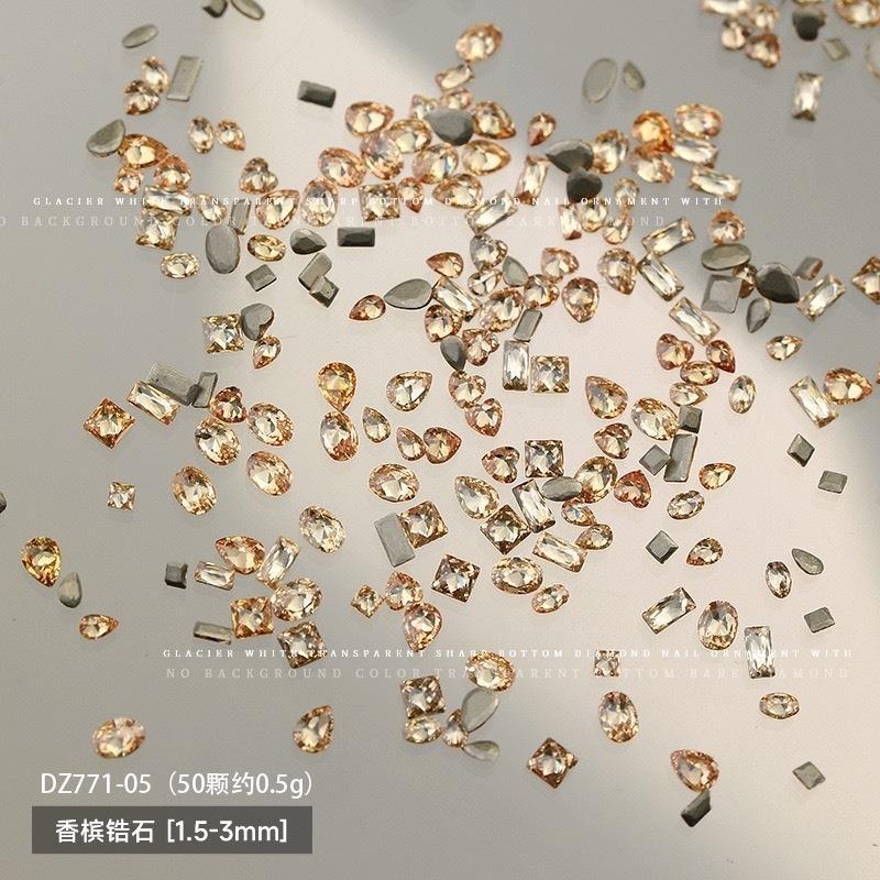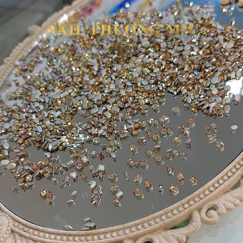 ✨Đá Mini Chân Bằng Vàng Trà Siêu Nhỏ 100 Viên, Thủy Tinh Nhân Tạo Cao Cấp, Đá Đính Móng, Siêu Sáng, Mix Mẫu Đa Dạng Sơn Gel Nữ