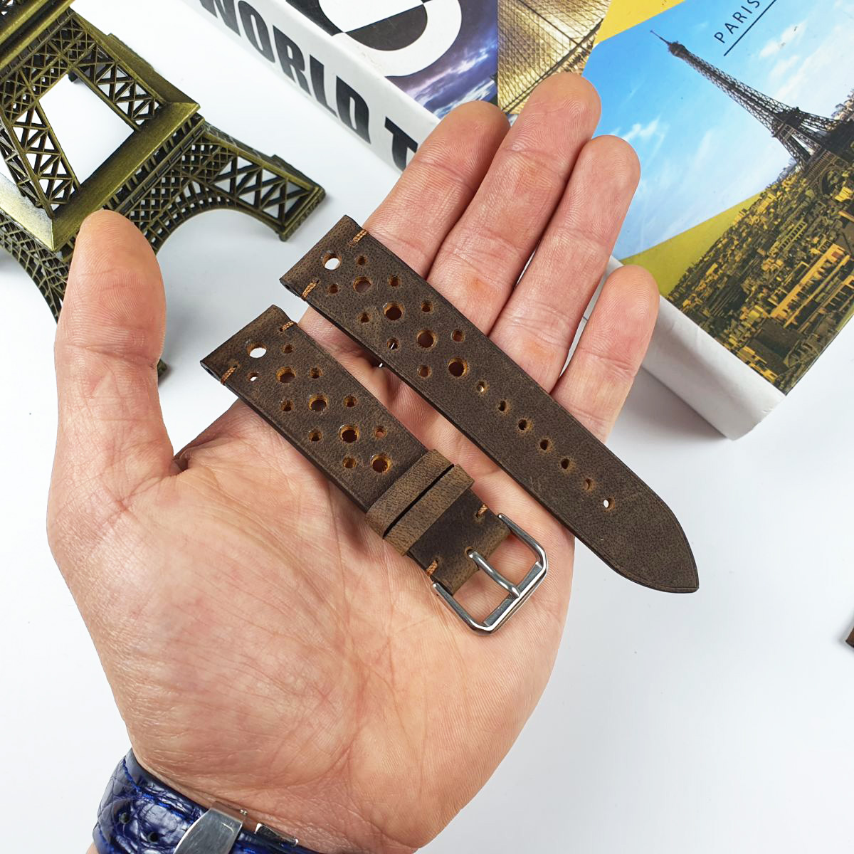 Dây Đồng Hồ Da Đà Điểu Huy Hoàng HT8402 - Nâu Đất với quy trình sản xuất tại xưởng bởi thợ thủ công tay nghề cao, dây đồng hồ thiết kế hợp thời trang,